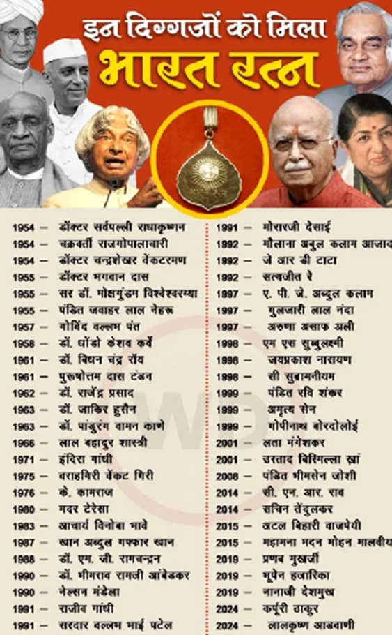 1954 – भारत रत्‍न पुरस्कार 02 जनवरी, 1954 को प्रारम्भ किया गया।