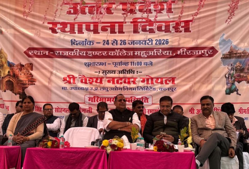 मीरजापुर, 24 जनवरी (हि.स.)। उत्तर प्रदेश की पहचान अब अराजकता या भय से नहीं, बल्कि सुरक्षा, सुशासन और स्वरोजगार से होती है। प्रधानमंत्री नरेंद्र मोदी की सोच और मुख्यमंत्री योगी आदित्यनाथ के नेतृत्व में उत्तर प्रदेश अब बीमारू नहीं, बल्कि विकास का ब्रांड बन चुका है। उत्तर प्रदेश अब सिर्फ देश का सबसे बड़ा राज्य नहीं, बल्कि भारत के विकास का मजबूत स्तंभ बन चुका है। यह बातें उत्तर प्रदेश लघु उद्योग निगम लिमिटेड के उपाध्यक्ष वैश्य नटवर गोयल ने उत्तर प्रदेश स्थापना दिवस-2026 के अवसर पर भव्य कार्यक्रम को संबोधित करते हुए कही।
