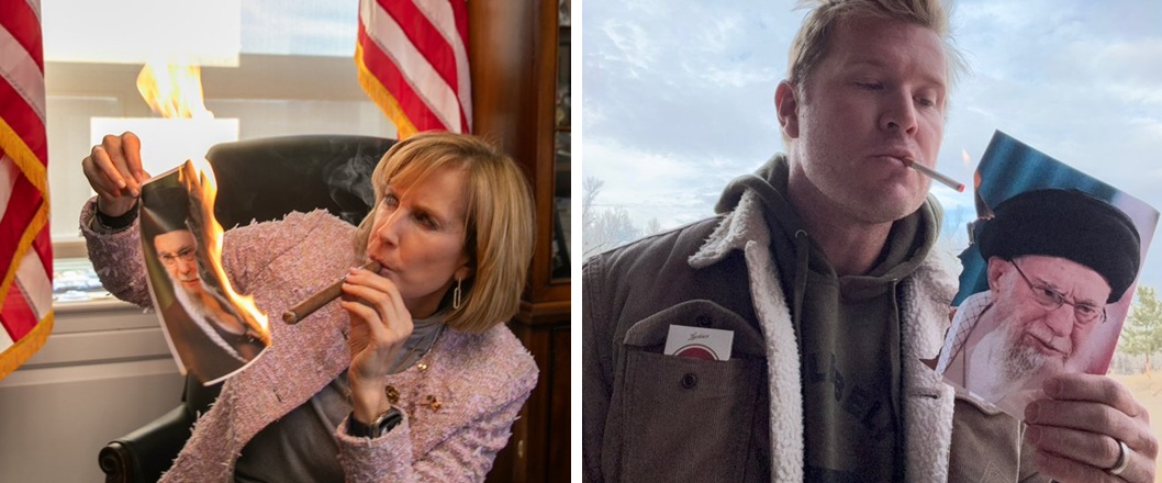 इस बीच अमेरिकी प्रतिनिधि क्लाउडिया टेनी ने मंगलवार को एक्स पर एक तस्वीर पोस्ट की। इसमें ईरान के सर्वोच्च नेता ली खामेनेई की तस्वीर को सिगार सुलगाने के लिए जलाया जा रहा है। इस तरह की विरोध वाली तस्वीरें जमकर वायरल हो रही हैं।
