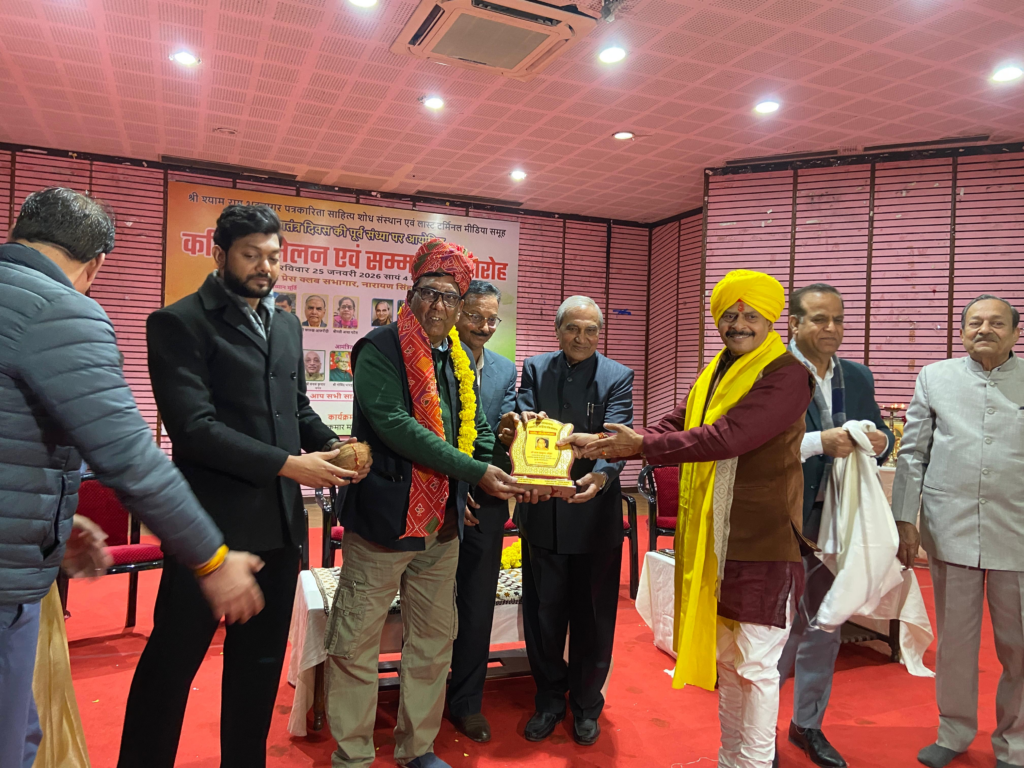 जयपुर। श्याम राय भटनागर पत्रकारिता साहित्य शोध संस्थान एवं लास्टटर्मिनल मीडिया समूह की ओर से गणतंत्र दिवस की पूर्व संध्या पर रविवार को पत्रकारिता, साहित्य एवं लेखन की विभिन्न विधाओं में आयोजित राज्य स्तरीयसम्मान समारोह में पत्रकारिता और साहित्य के क्षेत्र में उल्लेखनीयउपलब्धियां अर्जित करने वाले वरिष्ठ लेखक और पत्रकार बालमुकुंद ओझा, लक्ष्मण बोलिया, फारुख अफरीदी, आशा पटेल और एल सी भारतीय को साफा, शाल, प्रशस्ति पत्र और श्री फल से अलंकृत किया गया।