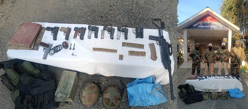 वहीं दूसरी ओर सुरक्षा बलों ने इंफाल पश्चिम जिले के लमसांग थानांतर्गत लंबाल अवांग लीकाई से, अन्य चीजों के अलावा भारी मात्रा में हथियार बरामद किया गया है। बरामद हथियारों में एक स्थानीय निर्मित सिंगल बैरल बंदूक, एक 9 एमएम की पिस्तौल, मैगजीन के साथ छह अन्य पिस्तौलें, 64 अलग-अलग कैलिबर के कारतूस, तीन एसएलआर के खाली कारतूस, एक नंबर-36 एचई ग्रेनेड, एक डेटोनेटर, तीन ट्यूब लॉन्चिंग डिवाइस, 10 आर्मिंग रिंग, एक मैगजीन, चार लोहे की प्लेटें, दो छलावरण हेलमेट, तीन बीपी वेस्ट और एक गोला-बारूद कंटेनर बॉक्स शामिल हैं