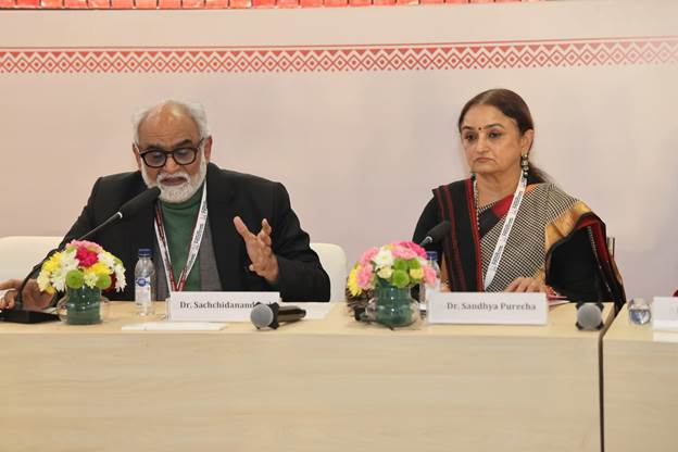 नाट्यशास्त्र की प्रासंगिकता पर अध्यक्षीय भाषण पद्म विभूषण डॉ. सोनल मानसिंह ने दिया। उन्होंने विभिन्न काल एवं संस्कृतियों में इस ग्रंथ की निरंतर प्रासंगिकता और समकालीन कलात्मक अभ्यास, सौंदर्य चिंतन एवं सांस्कृतिक विमर्श को सूचित करने की इसकी निरंतर क्षमता पर प्रकाश डालते हुए इसकी स्थायी सार्वभौमिकता के बारे मे बताया।