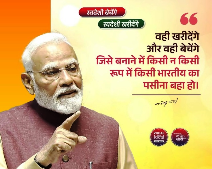 स्वयं प्रधानमंत्री नरेंद्र मोदी कई प्रमुख अवसरों पर आत्मनिर्भर भारत बनाने हेतु स्वदेशी अपनाने के संबंध में जनता से अपील कर चुके हैं। वे दुकानों को स्वदेशी वस्तुओं से सजाने और भारतीय उत्पादों को गर्व से उपयोग करने के लिए नागरिकों को प्रेरित करते रहते हैं। प्रधानमंत्री का मानना है कि विकसित भारत का सपना तभी साकार होगा जब भारतीय सामान वैश्विक बाज़ार में अपनी पहचान बनाएं और प्रत्येक नागरिक स्वदेशी उत्पादों के इस्तेमाल पर गर्व महसूस करे। इसीलिये प्रधानमंत्री अक्सर ‘वोकल फ़ॉर लोकल’ की बात करते सुने जाते हैं जिसमें स्थानीय बाज़ार और उत्पादों को बढ़ावा देने पर बल दिया जाता है। निःसंदेह भारत की आत्मनिर्भरता का मार्ग तभी मज़बूत होगा जब देशवासी अपने उत्पादन, तकनीक और नवाचार में स्वदेशी को प्राथमिकता दें। विदेशी वस्तुओं की जगह देसी उत्पाद को पहचान और सम्मान देना आज के दौर में राष्ट्रीय हित, सुरक्षा और आर्थिक मज़जबूती के लिए अत्यंत आवश्यक है।