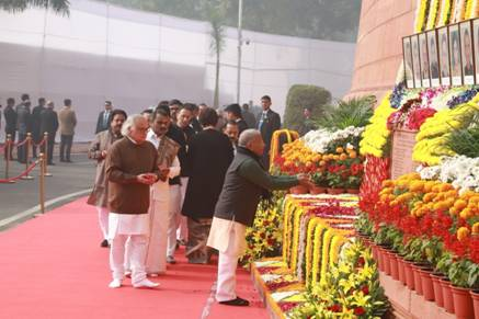 उपराष्ट्रपति, प्रधानमंत्री और अन्य गणमान्य व्यक्तियों ने संसद भवन परिसर में शहीदों को श्रद्धांजलि दी