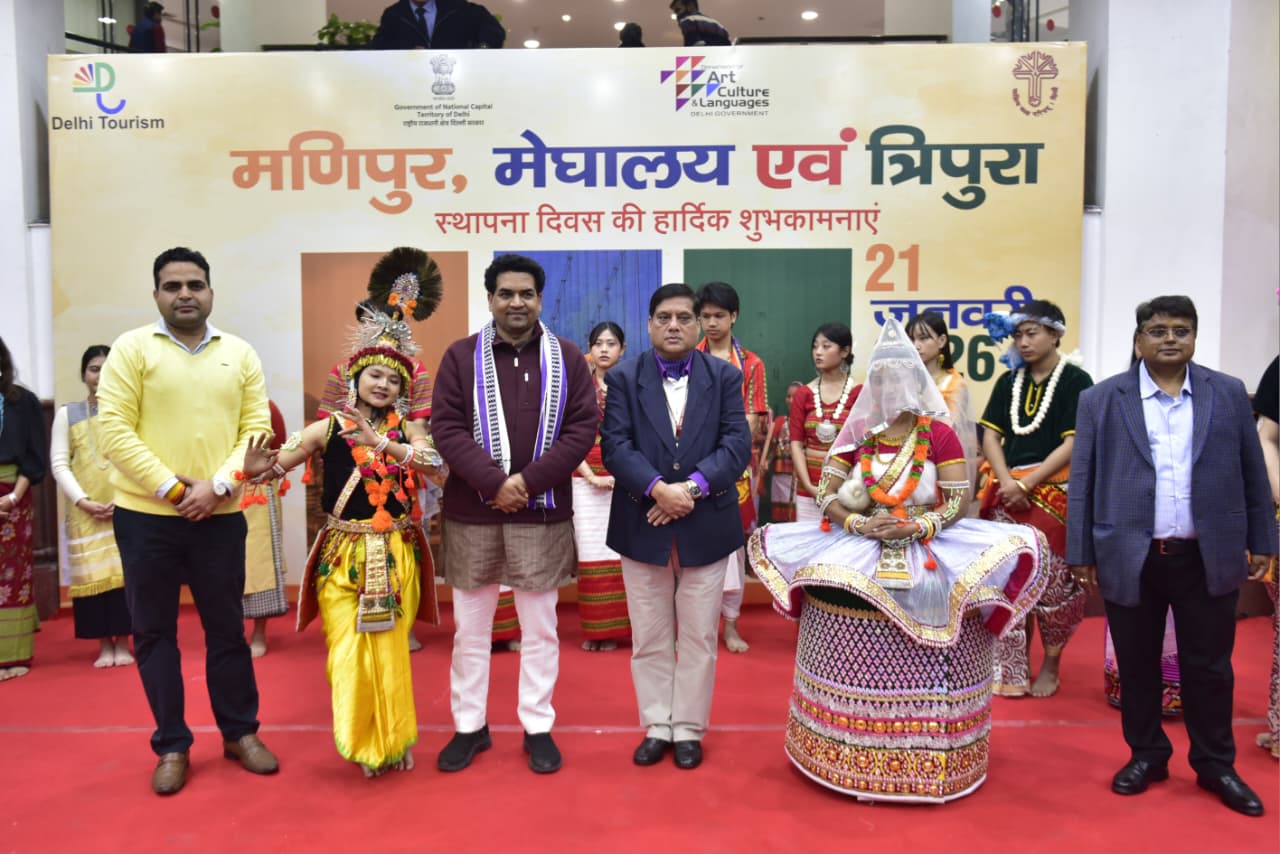 नई दिल्ली, 21 जनवरी (हि.स.)। दिल्ली सरकार ने बुधवार को दिल्ली सचिवालय में मणिपुर, मेघालय एवं त्रिपुरा राज्य स्थापना दिवस का आयोजन किया गया। इस आयोजन का उद्देश्य इन तीनों पूर्वोत्तर राज्यों की समृद्ध लोक संस्कृति, परंपराओं एवं सांस्कृतिक विरासत को राष्ट्रीय मंच पर प्रदर्शित करना रहा।