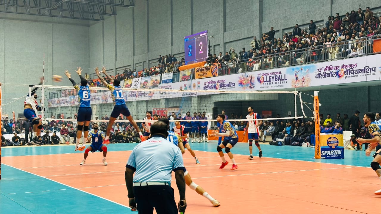 दूसरे सेमीफाइनल में रेलवे की टीम ने राजस्थान के खिलाफ अपनी बादशाहत कायम रखी। बेहद रोमांचक और संघर्षपूर्ण रहे इस मुकाबले में महिला वर्ग के दूसरे सेमीफाइनल में रेलवे ने राजस्थान को 3-1 से शिकस्त देकर फाइनल का टिकट कराया। रेलवे ने मैच की आक्रामक शुरुआत करते हुए पहले दो सेट 25-13 और 25-16 के बड़े अंतर से जीते। तीसरे सेट में राजस्थान ने जबरदस्त वापसी की और 26-24 से सेट जीतकर मैच को रोमांचक बना दिया। लेकिन चौथे सेट में रेलवे ने फिर से लय हासिल की और 25-19 से जीत दर्ज कर मैच 3-1 से अपने नाम कर लिया। ​रेलवे की टीम ने अपनी सधी हुई रणनीति और अनुभव से राजस्थान को पस्त किया। रेलवे की रुक्साना खातून ने शुरुआती सेट में राजस्थान के डिफेंस को पूरी तरह ध्वस्त कर दिया। उनकी सर्विस और सूझबूझ रेलवे की जीत की नींव बनी। वहीं, नेट पर अपनी फुर्ती के लिए मशहूर कविता ने ब्लॉक और स्मैश के बीच शानदार संतुलन बनाए रखा। 25-13 के पहले सेट में उनकी भूमिका ‘गेम चेंजर’ रही। जबकि एस. शालिनी ने कोर्ट के हर कोने को कवर किया। उनके सटीक प्लेसमेंट ने रेलवे को तीसरे सेट की हार के बाद चौथे सेट (25-19) में वापसी कराने में मदद की। डी.पी. एझिलमथी अनुभवी एझिलमथी ने टीम के ‘अटैक’ को दिशा दी। कठिन समय में शांत रहकर अंक बटोरना उनकी खासियत रही। जेसना एन.टी. लिबरो के रूप में असंभव गेंदों को उठाकर रेलवे के काउंटर-अटैक को जीवित रखा। प्रेरणा पाल ने राजस्थान की दिग्गज खिलाड़ियों को अपने ब्लॉक से रोके रखा। वह टीम के लिए संकटमोचक बनकर उभरीं। हालांकि राजस्थान की टीम ​भले ही मैच हार गया, लेकिन तीसरे सेट में उन्होंने जिस तरह 26-24 से जीत दर्ज की, उसने स्टेडियम में मौजूद हर दर्शक को खड़े होने पर मजबूर कर दिया। कविता देवी राजस्थान की दमदार स्मैश ने रेलवे जैसी मजबूत टीम को भी तीसरे सेट में बैकफुट पर ला दिया। पूजा ने मैच के सबसे लंबे रैलियों में पूजा का प्रदर्शन काबिले तारीफ रहा।