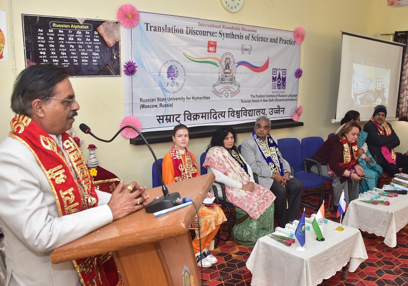 यह विचार उज्जैन के सम्राट विक्रमादित्य विश्वविद्यालय के कुलगुरु प्रो. अर्पण भारद्वाज ने बुधवार को अंग्रेजी अध्ययनशाला एवं विदेशी भाषा विभाग सम्राट विक्रमादित्य विश्वविद्यालय उज्जैन तथा रशियन विश्वविद्यालय मॉस्को, द पुश्किन इंस्टीट्यूट ऑफ रशियन लैंग्वेज और रशियन हाउस नई दिल्ली के संयुक्त तत्वावधान में “अनुवाद विमर्श: विज्ञान और व्यवहार का संश्लेषण” विषय पर आयोजित अंतरराष्ट्रीय संगोष्ठी को संबोधित करते हुए व्यक्त किए। सम्राट विक्रमादित्य विश्वविद्यालय द्वारा भारत और रूस के बीच उच्च शिक्षा के क्षेत्र में शैक्षणिक आदान-प्रदान की श्रृंखला के अंतर्गत विश्वविद्यालय परिसर में पहली बार एक दिवसीय अंतरराष्ट्रीय कार्यशाला का आयोजन किया गया।